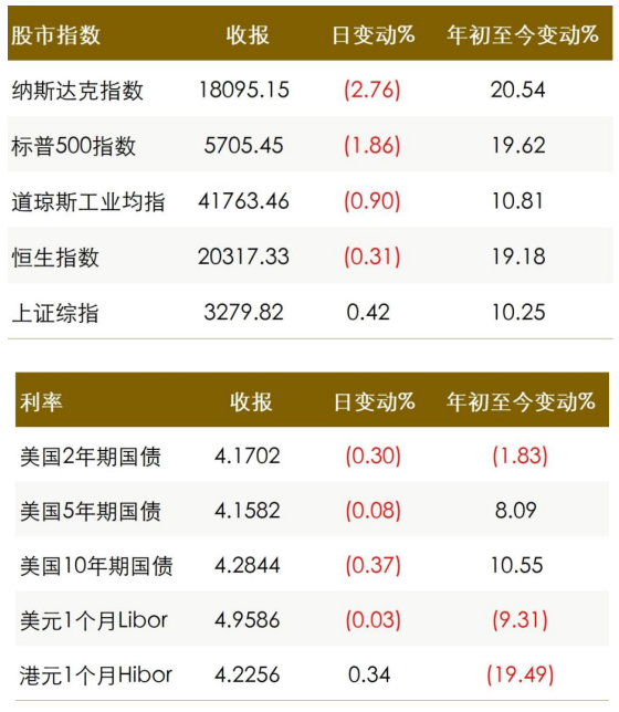 美股市场:美股三大指数集体收跌,截至当天收盘,道琼斯工业平均指数比前一交易日下跌240.59点,收于44401.93点,跌幅为0.54...