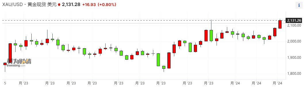 年初至今,黄金价格已经累涨超60美元。更远地看,黄金已经持续了16个月的火热涨势,从2022年中1600美元的水平累涨了三成。媒体分析称,黄金的涨势主要是由美联储降息预期的重燃,投资者寻找避险资产,以及各国央行持续买入等因素推动的。