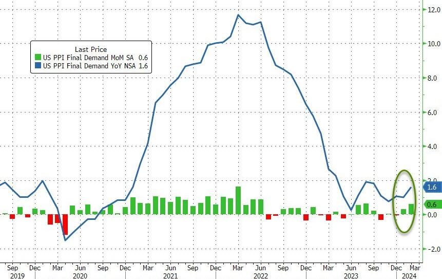 美国劳工部周四公布的数据显示,2月份生产者价格指数(PPI)远超预期,环比上升0.6%,为2023年8月以来最大增幅,进一步表明了通胀仍在加剧。