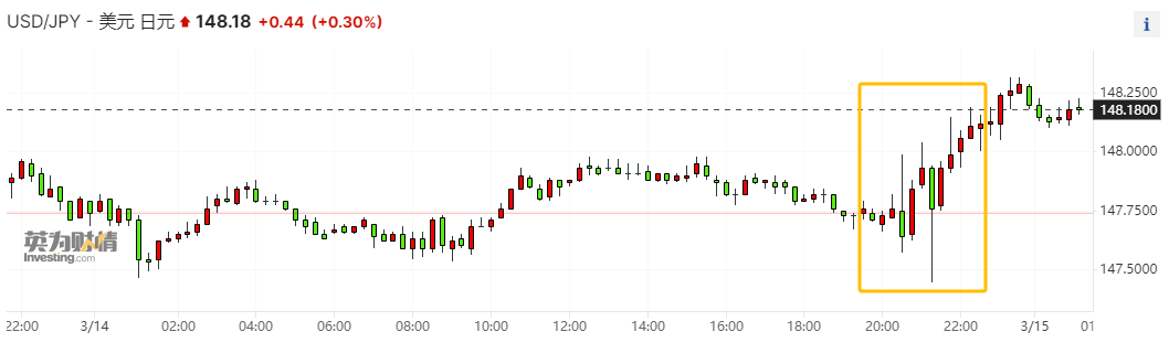 受这一消息的影响,美元兑日元大幅波动,十分钟内暴跌逾50点至147.43,现回弹近60点至148上方。