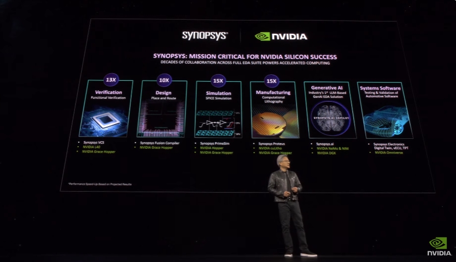 老黄开始介绍一系列合作伙伴,包括ANSYS、Synopsis、Cadence等。