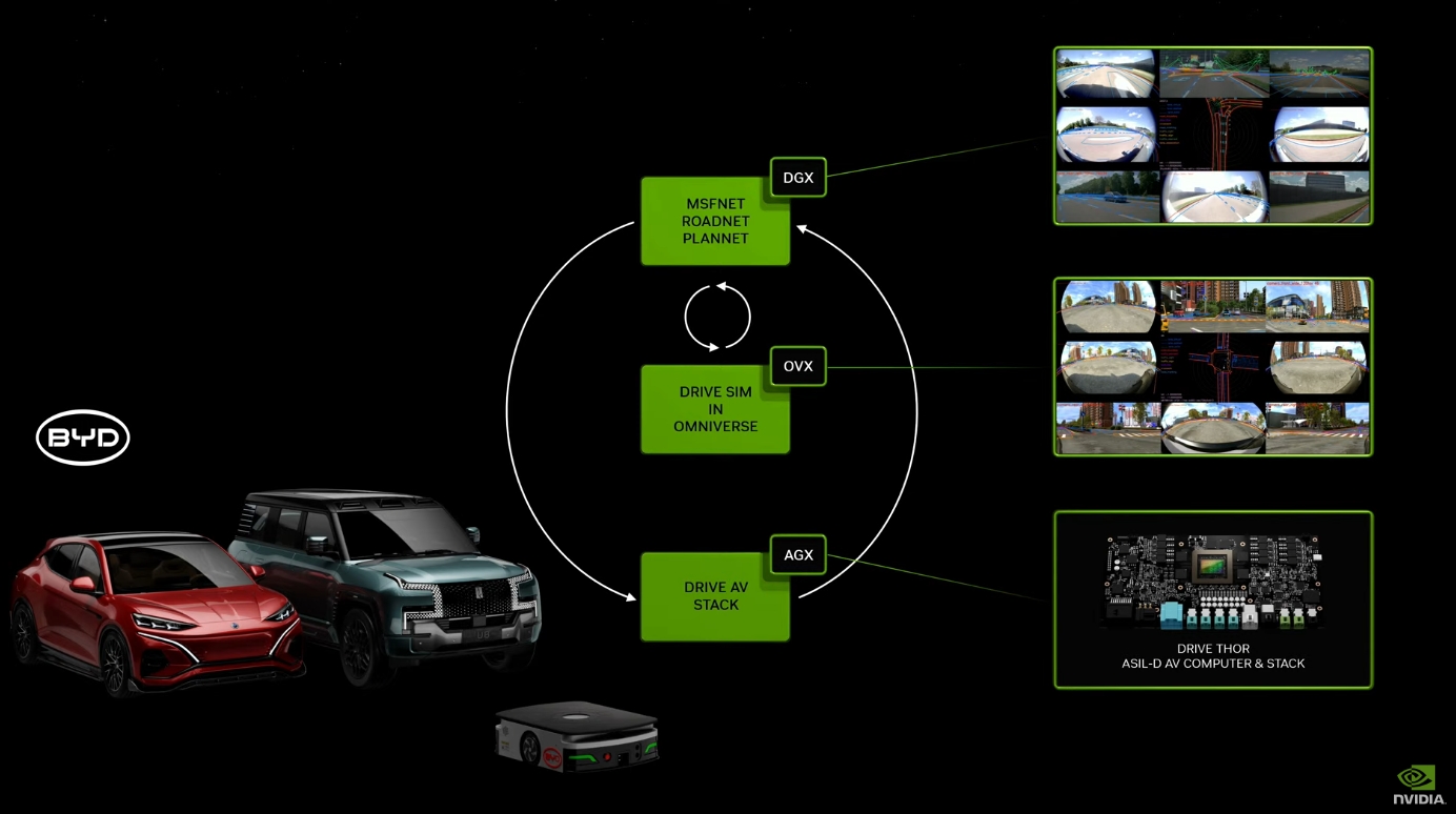 可能是时间不太够了,老黄开始加速官宣一系列合作。其中提到全球最大电动车公司比亚迪将采用英伟达下一代智能汽车芯片Thor。