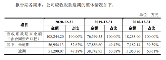 问询中还涉及了重塑能源应收账款过高的情况。数据显示,2018年-2020年,重塑能源的应收账款余额分别是1.8亿元、7.7亿元和10.5亿元,占同期流动资产的比例分别32.44%、58.70%及48.94%,占同期营业收入的比例分别为117.25%、110.43%及171.39%。在其披露的应收账款客户中,不乏上市企业,如宇通客车。同时,重塑能源同期分别有60.61%、50.58%和47.38%的应收账款逾期。