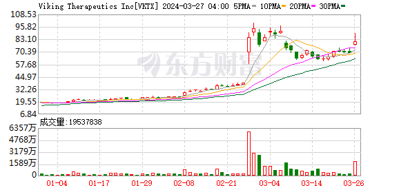 美东时间周二,据维京治疗(Viking Therapeutics)发布的研究数据显示,该公司的口服减肥药在临床试验中取得了积极的结果,不仅减肥效果好,而且副作用较低。美股早盘,该公司股价涨幅逼近20%。