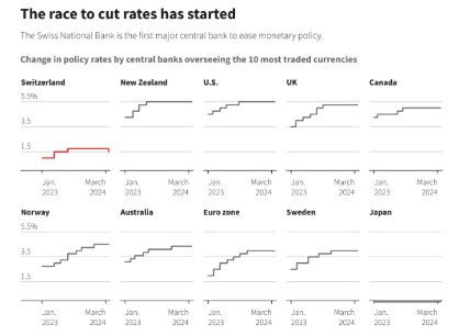 其实,在上周瑞士央行意外降息——成为G10中率先转向宽松的央行后,外汇市场上一些敏锐的投资者就已经“如梦初醒”了——他们开始意识到,美联储反而可能是全球维持利率峰值“最高最久”的几家央行之一。