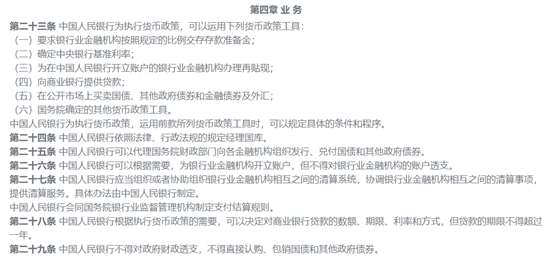 第二十五条规定,央行可以代理国务院财政部门向各金融机构组织发行、兑付国债和其他政府债券。但第二十九条又规定,央行不得对政府财政透支,不得直接认购、包销国债和其他政府债券。