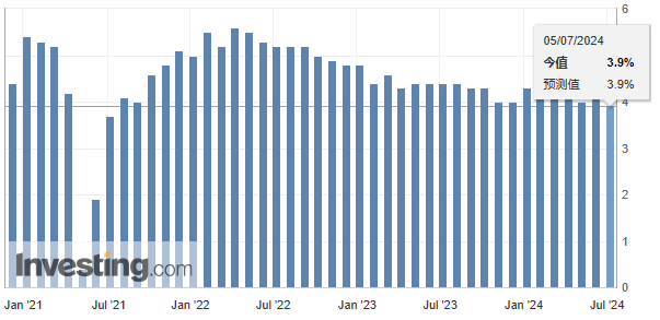 需要指出的是,3.9%的薪资同比增幅是2021年7月以来的最低水平。