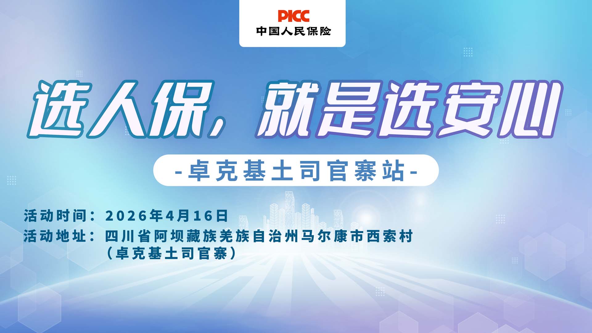 2026年4月16日,中国人民财产保险股份有限公司马尔康支公司将走进卓克基土司官寨,开展“选人保,就是选安心”车险专项服务活动。现场配备专业顾问,免费为车主解答车险投保、理赔、续保等各类疑问,精准核算保费,详解条款细节,结合车主用车场景定制专属保障方案,让每一位车主都能明明白白投保、安安心心用车。
