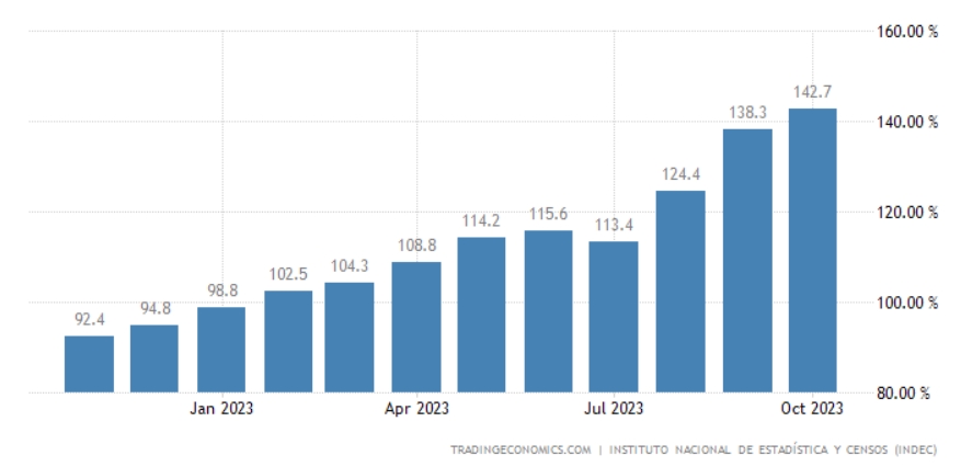 根据最新消息,阿根廷政府的首席发言人Manuel Adorni在当地时间周二早晨透露,新任阿根廷经济部长Luis Caputo将在当地时间晚些时候宣布新政府的经济“休克”(shock)计划。Adorni表示,阿根廷的现状是45%的贫困率和接近200%的通胀率,这个国家正在走向恶性通胀,这些政策的目标正是避免出现这种情况。