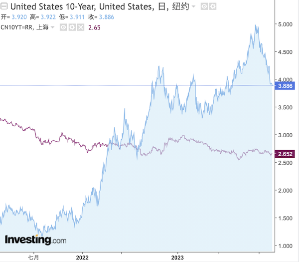 随着降息信号不断释放,全球资金涌入美债,这也推动美债收益率大幅下行。10年期美国国债收益率从此前最高的5%以上降至3.9%以下。受此影响,中美利差迅速收窄,目前利差仅为约1.2%,此前最高时逼近2.3%。