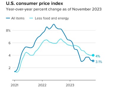 从通胀数据来看,美国劳工部公布的数据显示,美国11月CPI同比增速已经回落至了3.1%,较去年夏天9.1%的峰值水平累计下降了整整六个百分点。虽然距离实现回到美联储2%的通胀目标,还有一段并不平坦的“最后一英里”要走,但至少对于美国决策者而言,最为凶险的时刻无疑已经过去。根据美联储官员自身的预估,到2024年底核心通胀率和总体通胀率都将达到2.4%,距离中期目标只有咫尺之遥。