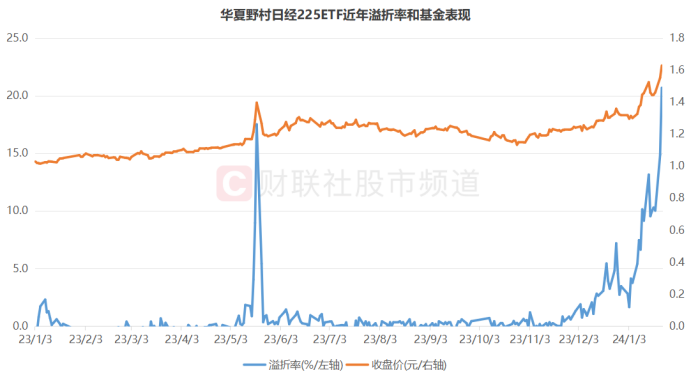 注:华夏野村日经225ETF近年溢折率和基金表现(截至1月23日收盘)