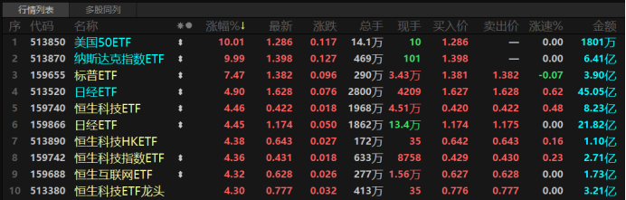 今日(1月23日),多只跨境ETF再度拉升,截至收盘,美国50ETF复牌后继续涨停,晋级2连板,纳斯达克指数ETF也于尾盘封板涨停,近2日累计上涨近19%。此外,标普ETF、日经ETF、恒生科技ETF等跨境ETF也涨幅居前。