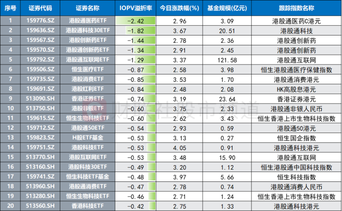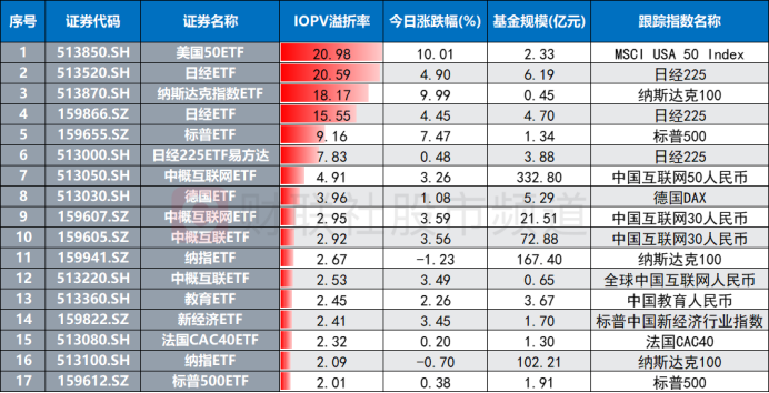 注:今日溢折率居前的跨境ETF(截至1月23日收盘)
