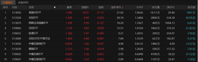 跨境ETF行情盘点,这些基金折价状态