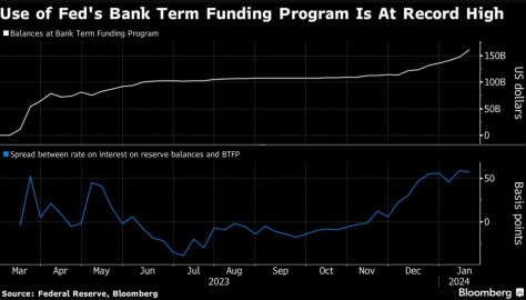 美联储的数据显示,截至1月17日(上周三)的一周内,从BTFP借入的资金规模已达到创纪录的1620亿美元。而此前一周刚创下的历史前高纪录为1470亿美元。