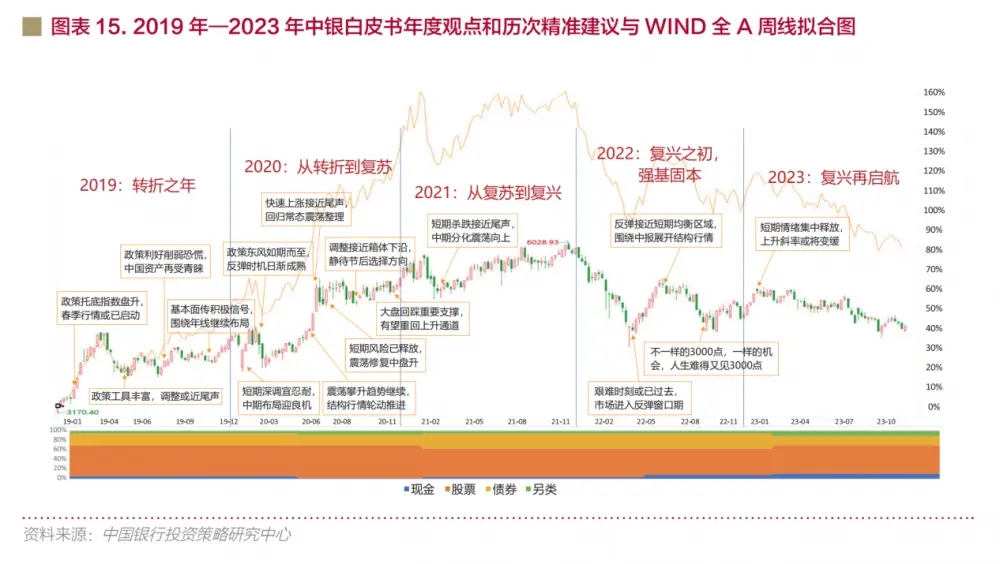 作为资产配置领域的专业深度报告,在过去的五年中,中行用《白皮书》观点指导客户战略资产配置。回顾来看,中行策略积极应对,过去五年战略配置绩效中规中矩,战术时机选择到位,战略配置与战术择时阿尔法凸显。