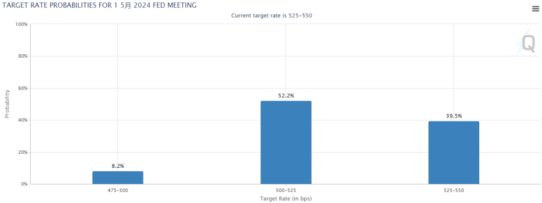 据芝商所的“美联储观察”工具显示,目前市场认为5月开启降息进程的概率接近60%。