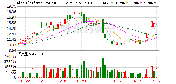 区块链概念股大涨,嘉楠科技涨超30%,Marathon Digital、Riot Platforms涨逾14%,MicroStrategy涨逾12%。